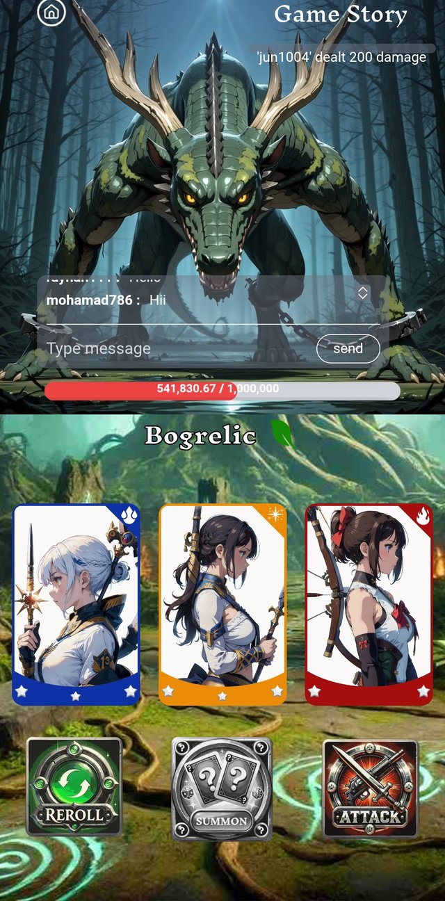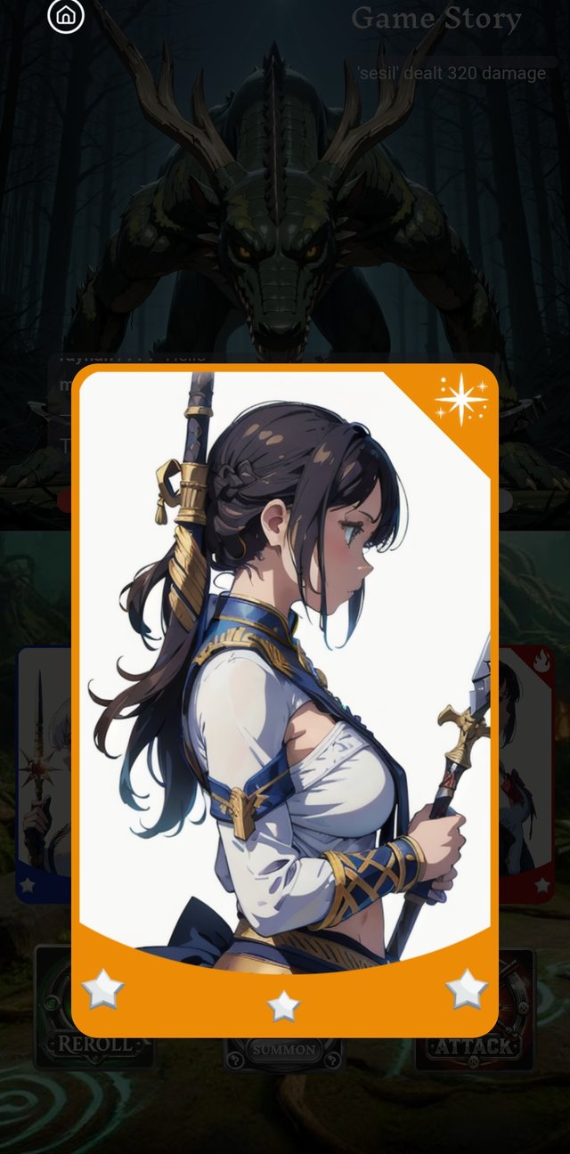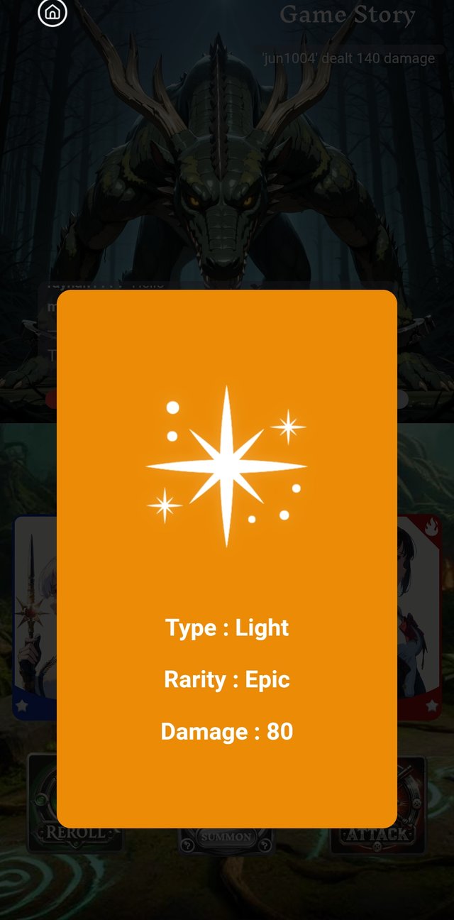 At first, I go to play the game.I clicked on play button. After that I Clicked on summon button.There I saw 3 cards.These were so good for today.I checked the 3 star card.It's type was light, rarity was epic and damage was 80.