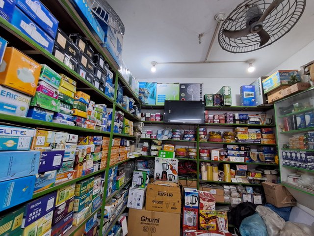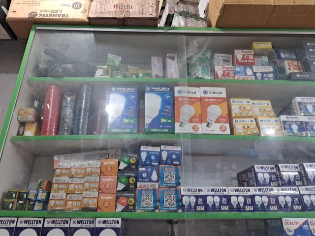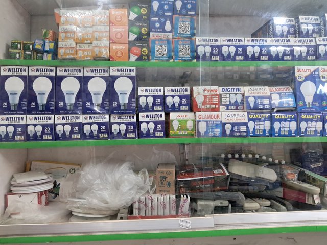 This shop is set up in a standard size room. Here, each material is set up on shelves very nicely. Each product is kept in a specific place and different types of energy lights, ACDC lights, everything is available in this shop. The owner of this shop is a bank officer and he has a staff here, whose language is very good. He deals with the customers sincerely.