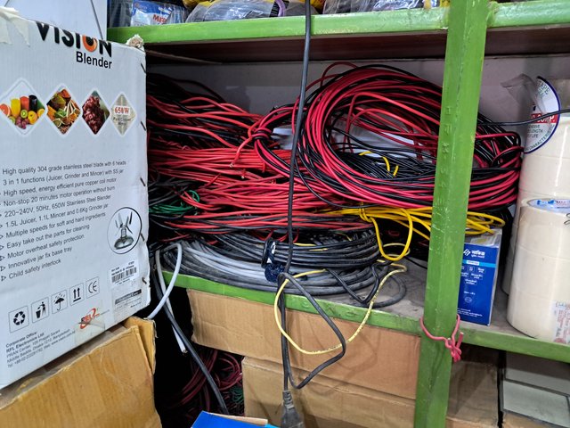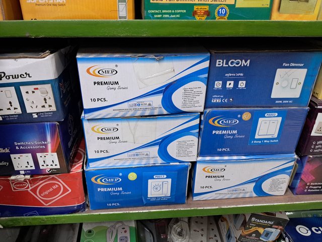 This shop has many types of electrical items. Such as electric wire, breaker, switch, socket, plug, multiplug, holder, light, charger fan, ceiling fan, remote, bulb, energy light and various types of table lights, wiring box, multimeter, electric board, also there are many other materials for wiring at home in this shop.