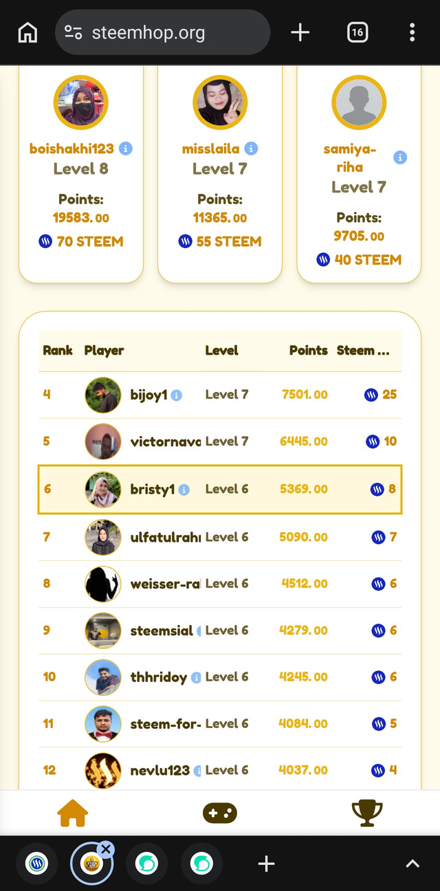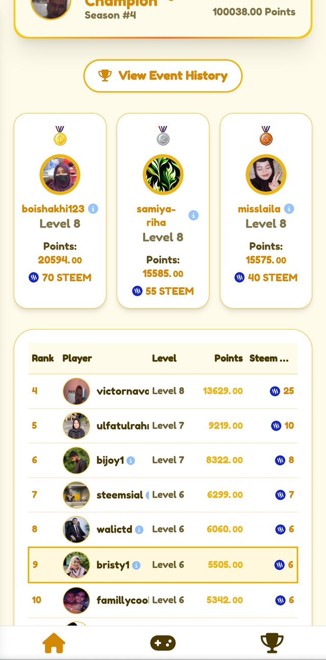 Today is a day where everyone is very busy. Because it is the month of Ramadan and everyone is fasting. Time is passing by while doing all the relevant activities. And that is why it can be said that everyone seems to be taking a break in playing games. Because it can be understood by looking at the points. Anyway, I can't speak for everyone, I will speak for myself. Since the month of Ramadan has come, there are various tasks at hand. I didn't have time to play this game along with various tasks. A little while ago, when I went to eat, I saw that some people had moved up with quite good points. Anyway, I myself tried to collect some points. And in that context, after playing a little, I saw that after collecting a few points, I was ranked number nine, which I saw on the leader board.