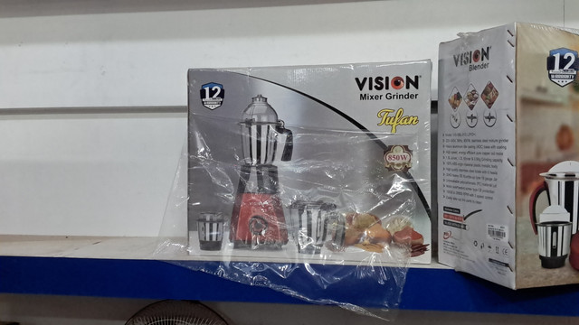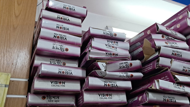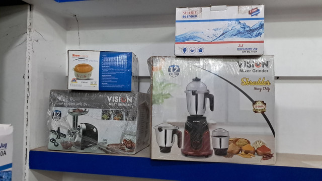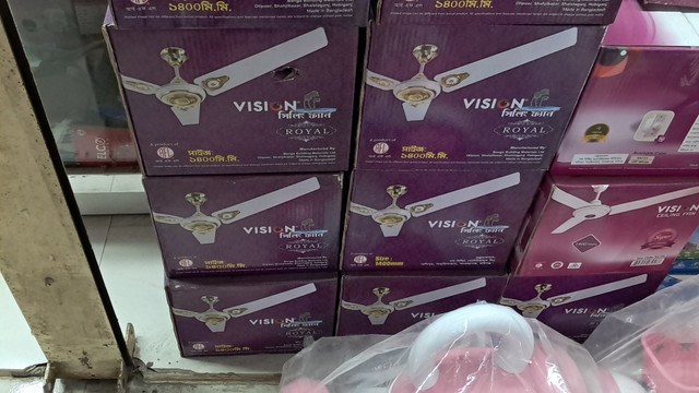 Various types of items are available here. For example, starting from fans, charger fans of different sizes and prices and quality are available. Along with that, there are different brands of items. That is, iam's bone set, as well as various items from the Vision brand. Such as blenders, hand blenders, ceiling fans, charger fans, children's cars and along with that, there are stove items and general items. Variations of different brands are kept here.