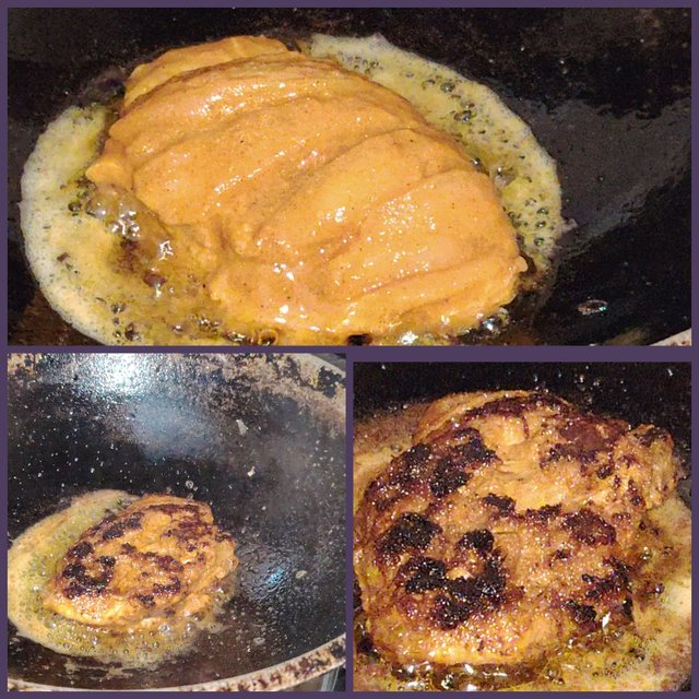 At this stage, I put a lot of oil in a pan. I fried these barbecues with a small amount of oil. Since there was no grill here, I fried this in a pan.Then I serve it.