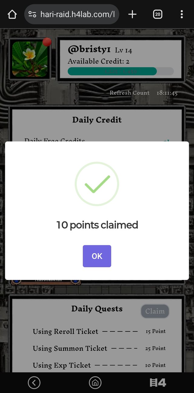 Today is my 75 day of the game. Today's level was 14 and the credit was 2. Like everyday , I claimed 10 points.