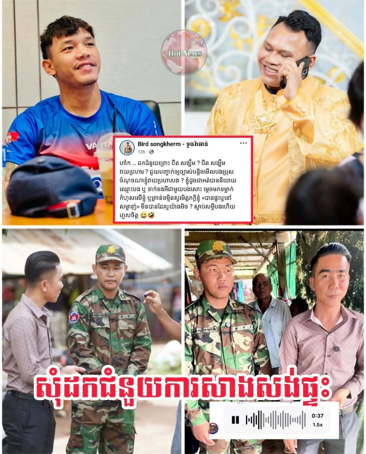 អុញនោះ! ម្ចាស់ក្រុមហ៊ុនកំណប់សម្រស់បានឆាតទៅកាន់កីឡាករព្រឿងសុជាតិ សុំដកជំនួយការសាងសង់ផ្ទះពីកីឡាករព្រឿង សុជាតិ វិញ ដោយម្ចាស់ក្រុមហ៊ុនរូបនេះលើកហេតុផលថា"ដោយសារតែមានការវា.យប្រ.ហារពីកីឡាករ២រូបមាន បឺត សង្ឃឹម និង រឿង សោភ័ណ្ឌ ធ្វើឱ្យមហាជនមានការហួសចិត្តជាខ្លាំង។ ដោយឡែកតាមរយៈកីឡាករបឺត សង្ឃឹម បានបង្ហោះសំណេរលើហ្វេសប៊ុករបស់ខ្លួនកាលពីថ្ងៃទី៣ ខែមេសា ឆ្នាំ២០២៦ ឆ្លើយតបទៅកាន់ម្ចាស់ក្រុមហ៊ុនកំណប់សម្រស់បែបនេះថា៖ ហា៎ក … ដកជំនួយព្រោះ បឺត សង្ឃឹម ? បឺត សង្ឃឹម វាយប្រ.ហារ ? ជួយបញ្ចាក់ឲ្យច្បាស់បន្តិចមេីលបងប្រុស ចំណុចណាខ្ញុំវាយប្រ.ហារបង ? ខ្ញុំដូចជាអត់បាននិយាយឈ្មោះបង ឬ ទាក់ទងអីជាមួយបងសោះ ម្តេចមកទម្លាក់កំហុសលេីខ្ញុំ ឬគ្រាន់ខម្មិនសួរមិត្តភក្តិខ្ញុំ «បានផ្ទះឬនៅសម្លាញ់» មិនបានដែរឬយ៉ាងមិច ? ស្តាប់សម្តីបងហេីយហួសចិត្ត 😃🤣