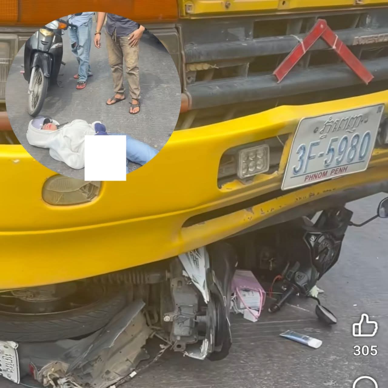 មួយបង្កដោយរថយន្តធុនធំបានបើកបុកម៉ូតូពេញទំហឹងបណ្ដាលឲ្យស្ត្រីម្នាក់រងរបួស ហេតុការណ៍នេះកើតឡើងនៅថ្ងៃទី 2 ខែមេសាឆ្នាំ 2026 នៅម្តុំវត្តនិរោតន៍រស្សី ច្បារពៅ ជិតការ៉ាស់សាំង Total