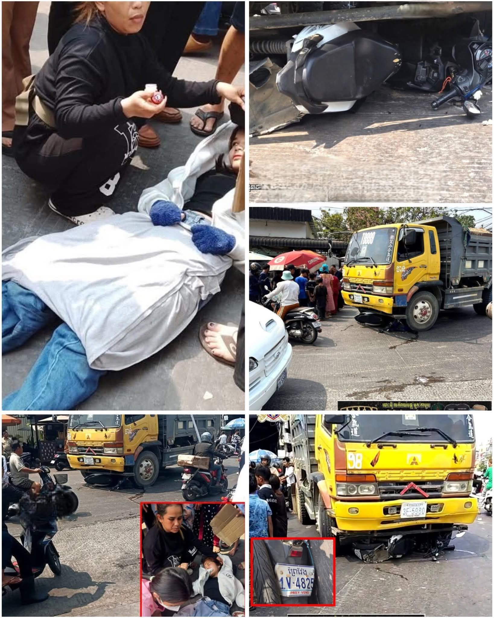 🚨 ក្រុងភ្នំពេញ៖ រថយន្តដឹកខ្សាច់បត់ឆ្វេងមិនប្រយ័ត្ន កិ-នទាំងម៉ូតូទាំងមនុស្ស បណ្ដាលឱ្យយុវតី