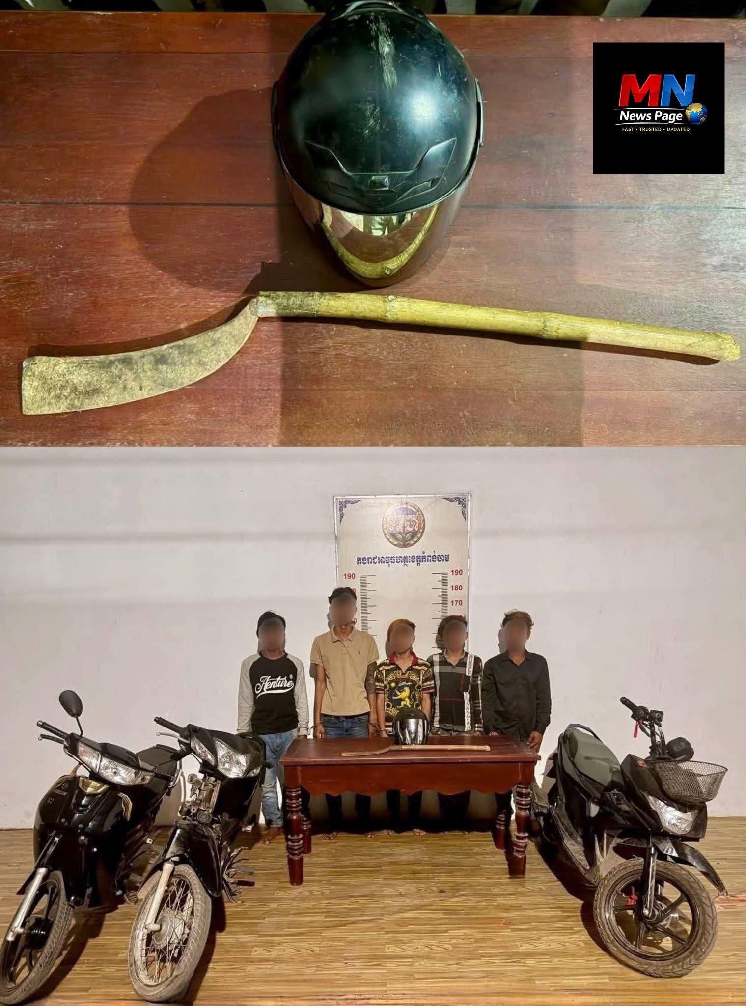 សមត្ថកិច្ចដកហូតកាំបិតផ្គាក់ និងម៉ូតូ៣គ្រឿង ជាមធ្យោបាយប្រព្រឹត្តបទល្មើស ខណៈជនសង្ស័យកំពុងត្រូវរៀបចំសំណុំរឿងបញ្ជូនទៅតុលាការ។ ប្រតិបត្តិការនេះបង្ហាញពីការអនុវត្តច្បាប់តឹងរ៉ឹង ដើម្បីធានាសុវត្ថិភាពជូនប្រជាពលរដ្ឋ។