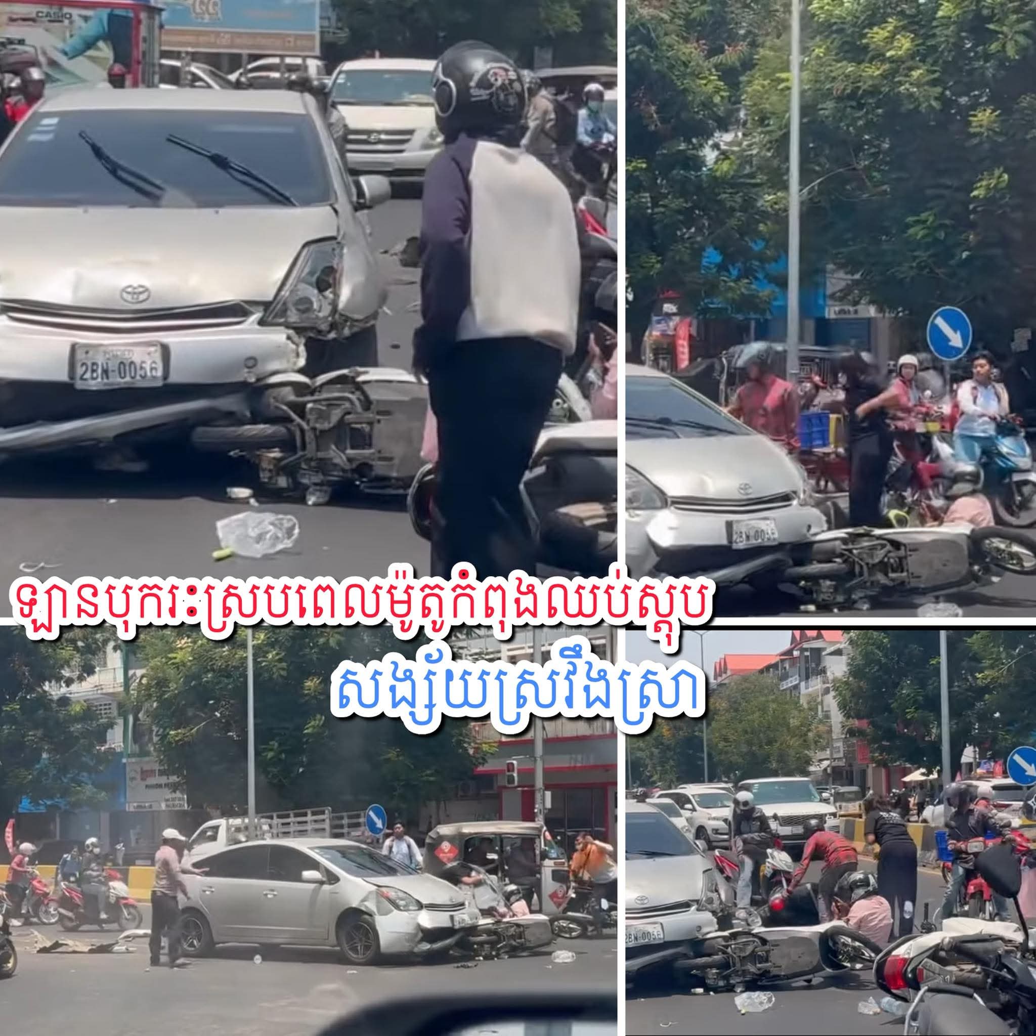 ក្រុងភ្នំពេញ៖ ឡានមួយគ្រឿងបោះពួយបុករះម៉ូតូជាច្រើនគ្រឿង ខណៈកំ