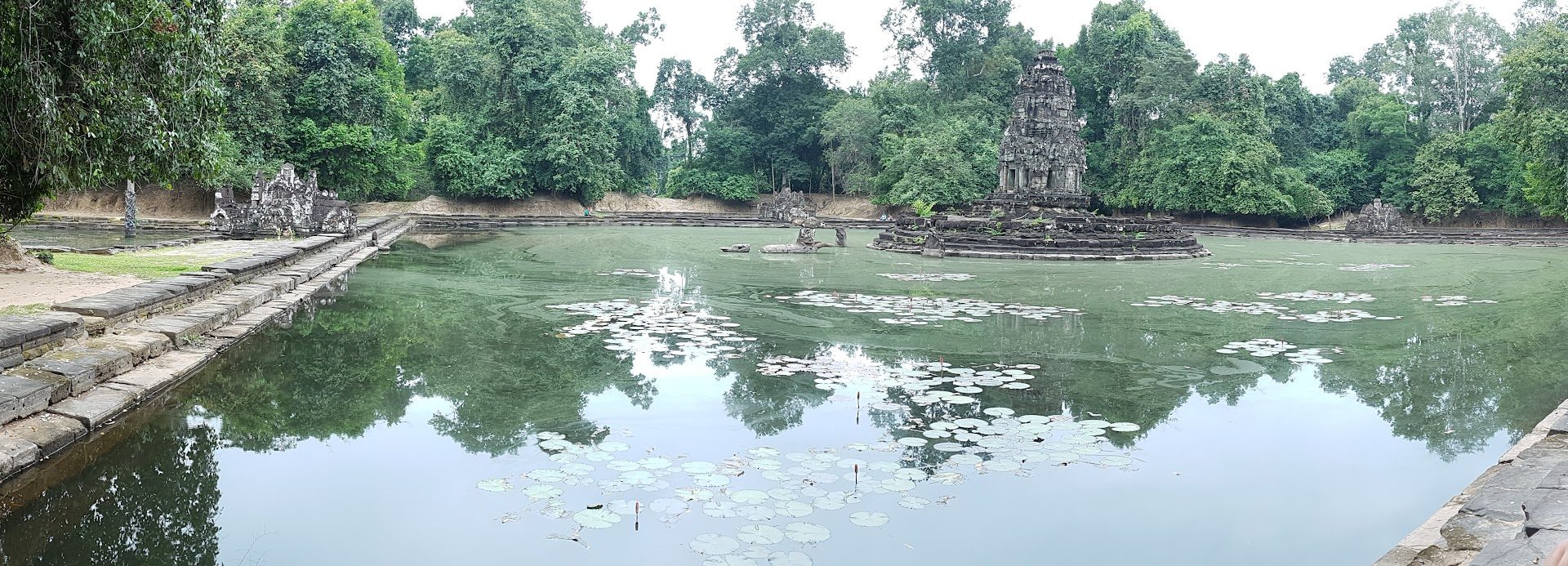 មន្ដ្រីជំនាញផ្នែកបុរាណវិទ្យានៃក្រសួងវប្បធម៌និងវិចិត្រសិល្បៈបានបង្ហាញឲ្យដឹងដែរថា ប្រាសាទនាគព័ន្ធស្ថិតនៅតាមអ័ក្សជាមួយប្រាសាទព្រះខ័នដែលមានឈ្មោះថា ជ័យតដាកៈ មានបណ្ដោយ៣៥០០ម៉ែត្រ និងទទឹង៩០០ម៉ែត្រ ។ តាមឯកសារខ្លះបានឲ្យដឹងថា តាមសិលាចារឹកនៅប្រាសាទព្រះខ័នបានបញ្ជាក់ថា ជ័យតដាកៈគឺជាឈ្មោះបឹងមួយនៅខាងជើង ។ លោកជីវតាខ្វាន់បានពណ៌នាថា ស្រះនេះមានទឹកថ្លាមកពីរស្មីនៃប្រាសាទដែលមានពន្លឺដូចមាសចាំងឆ្លុះលាយឡំនឹងផ្កាឈូកដែលនាំមកនូវពណ៌សម្បុរដូចទឹក «បឹងឈាម» នៃព្រះភគវ័ន្ដ ។ នៅកណ្ដាលបឹងមានប្រាសាទដែលគួរឲ្យរីករាយទៅតាមផ្ទៃទឹកដែលព័ទ្ធជុំវិញតួប្រាសាទនេះ ហើយដែលទឹកនេះគឺជាទឹកគន្ធី «ទឹកមន្ត» សម្រាប់លាងបាបដែលប៉ះពាល់ ។ ការឆ្លងកាត់តាមទឹកបឹងនេះទៅកាន់បរិវេណប្រាសាទពីសម័យមុន គេត្រូវជិះដោយទូកនៅក្នុងរដូវវស្សា ។