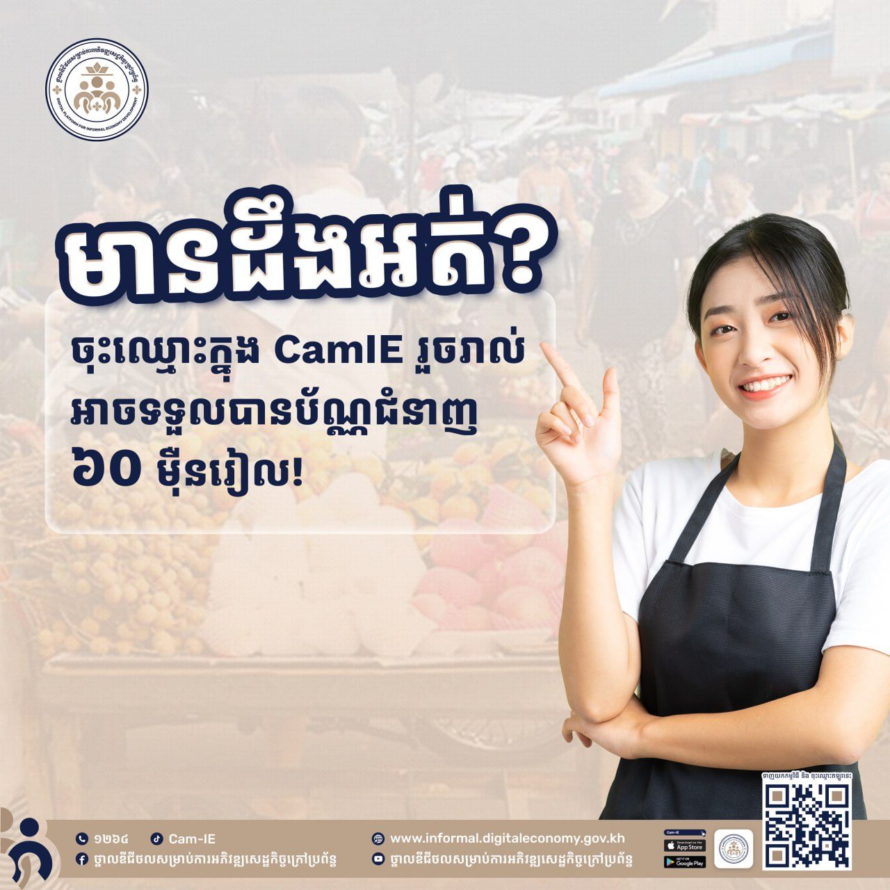 ❓ តើបងប្អូនបានចុះឈ្មោះក្នុងប្រព័ន្ធ CamIE រួចហើយឬនៅ? ប្រសិនបើចុះឈ្មោះរួចរាល់ និងមានវិញ្ញាបនបត្រត្រឹមត្រូវ បងប្អូនមានឱកាសទទួលបាន ប័ណ្ណជំនាញ (Skills Voucher) ពី SDF ដែលមានចំនួនទឹកប្រាក់ដល់ទៅ ៦០ ម៉ឺនរៀល (១៥០ ដុល្លារ)។