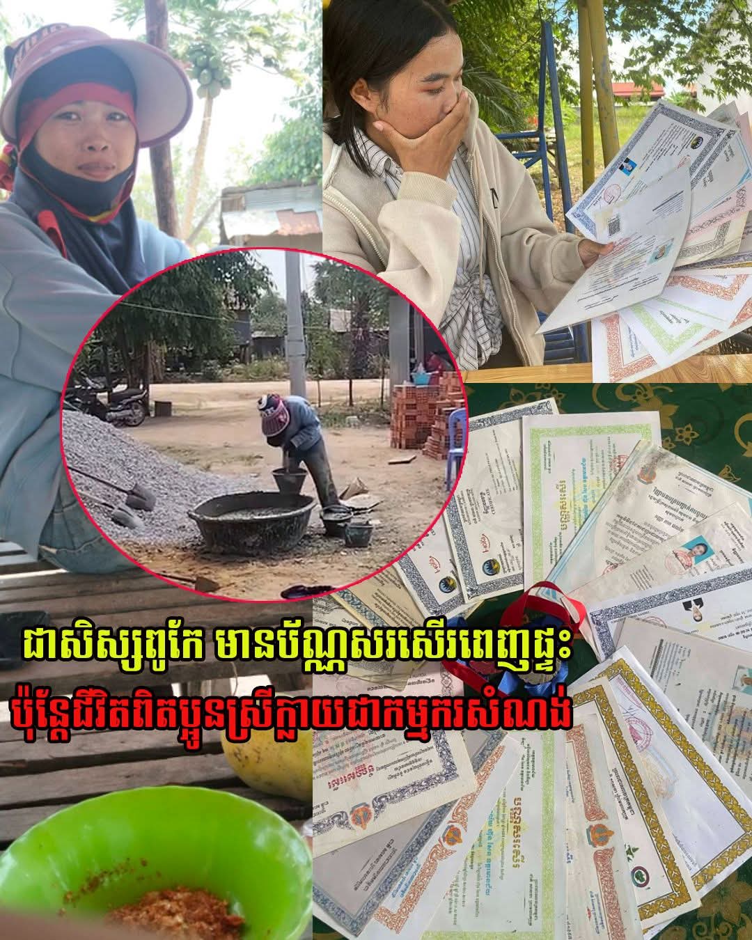 ជាសិស្សពូកែ 🏆 មានប័ណ្ណសរសើរពេញផ្ទះ ប៉ុន្តែជីវិតពិតប្អូនស្រីក្លាយជាកម្មករសំណង់ 😢