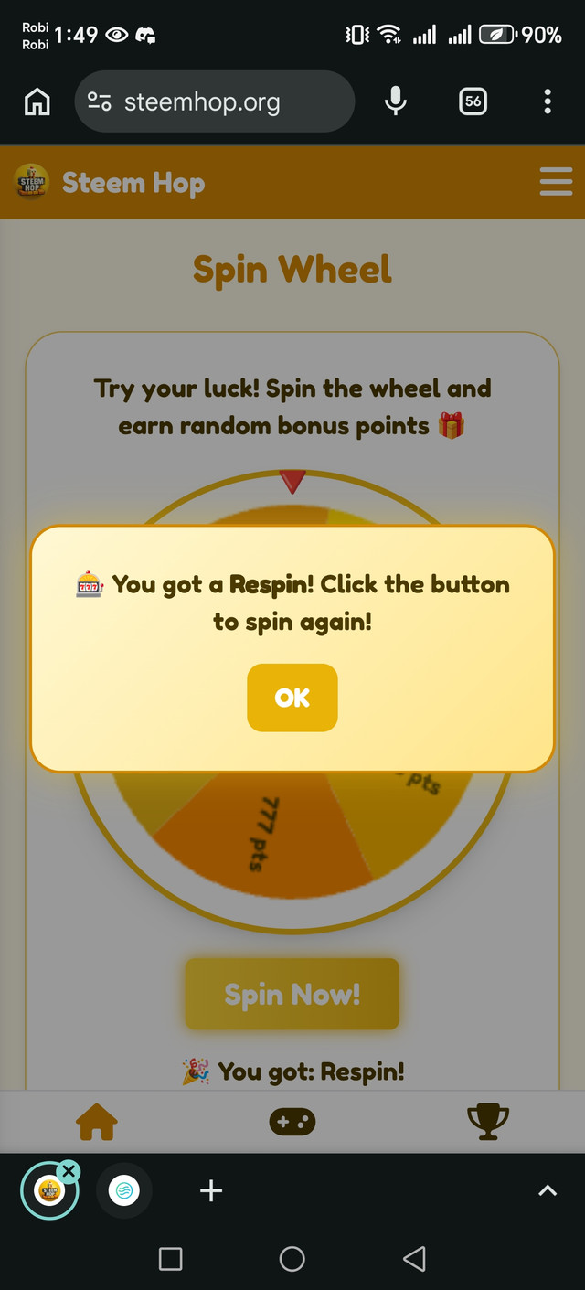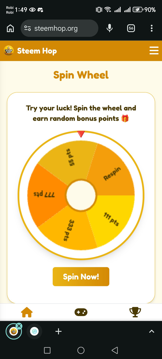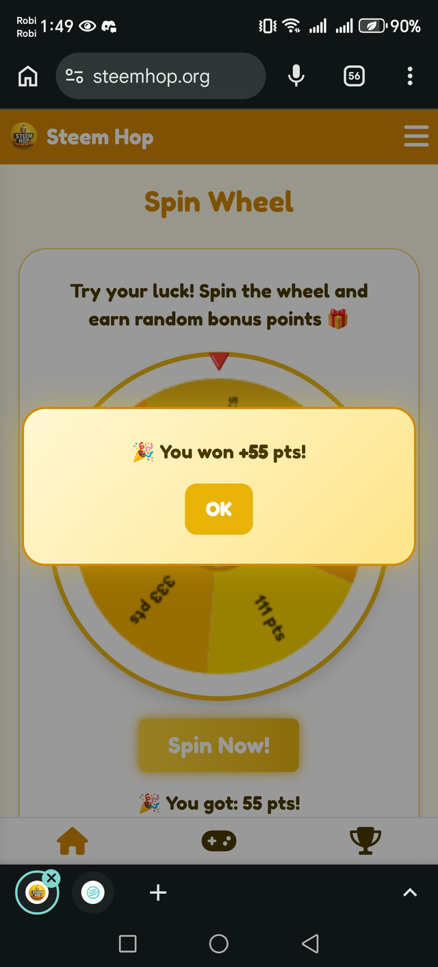 Then go to three dot menu and Spin wheel after spin i got respin and again click also got 55 pts.