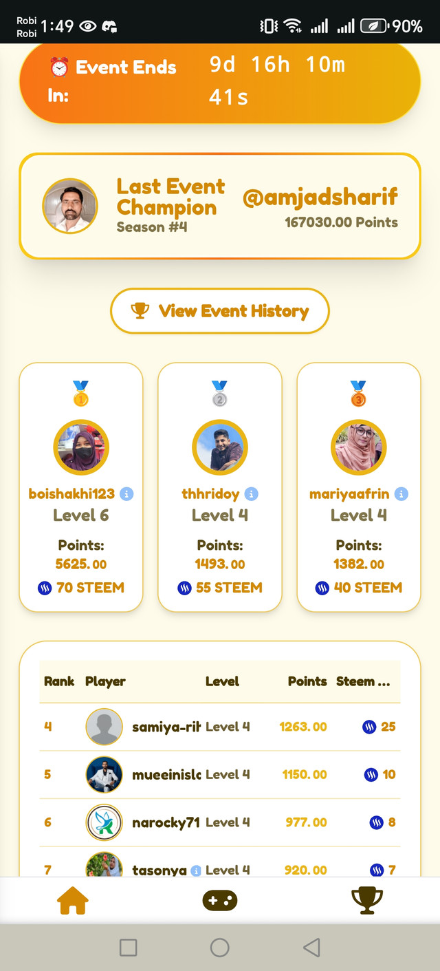 Now go to check leaderboard i have seen my position is 23,Also i have seen three another top players. congratulations to all of them who played well.