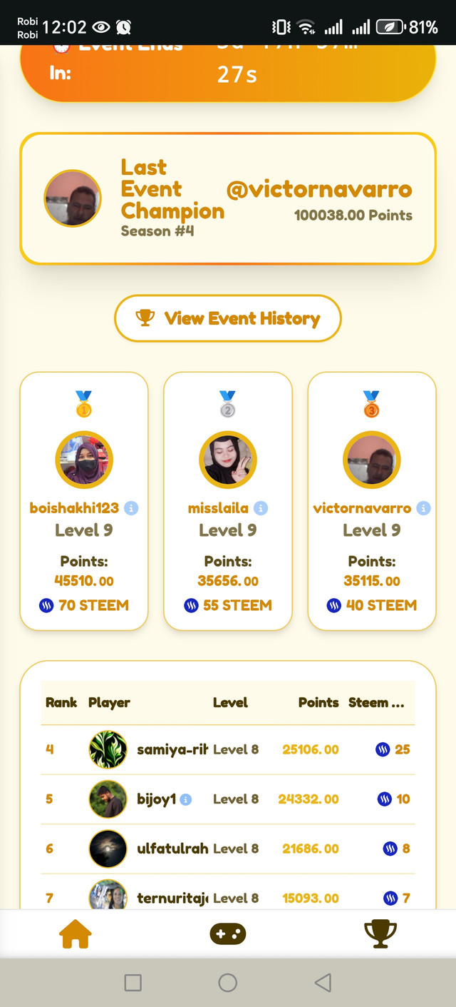 Now go to check leaderboard i have seen my position is 22,Also i have seen three another top players. congratulations to all of them who played well.
