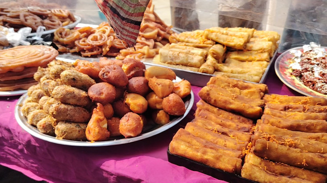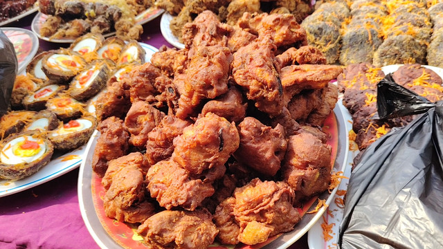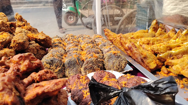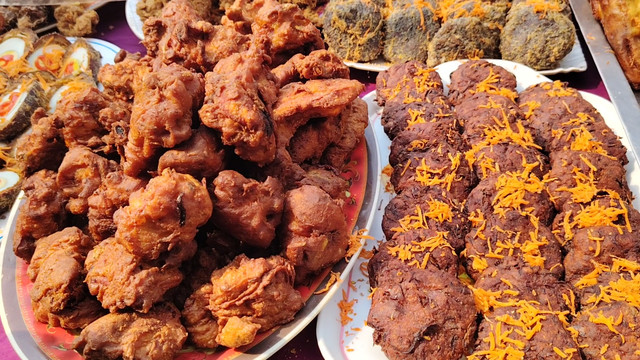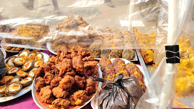 There are many fried items in the products here such as purple potato chops, vegetable chops, jilapi, burinda, vegetable pakoras, egg chops, chicken fry, vegetable rolls, chicken rolls, meat balls, and many other things. Oh, the quality should be quite good because if the football is not good, there will not be many customers there, so they maintain good quality and make their products.