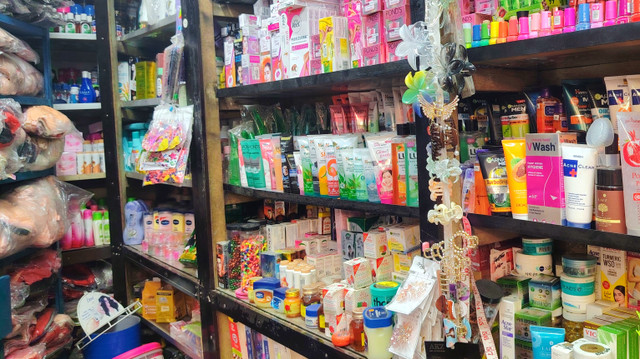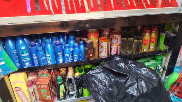 There are no extra employees for any special work. They both run this shop, father and son, the shop is run in shifts by these two. If his son is studying and runs the shop along with his studies. The shop is in a medium-sized room and has a large amount of cosmetics.