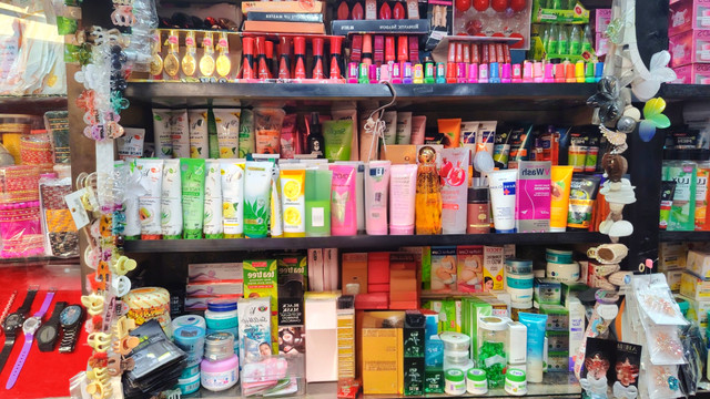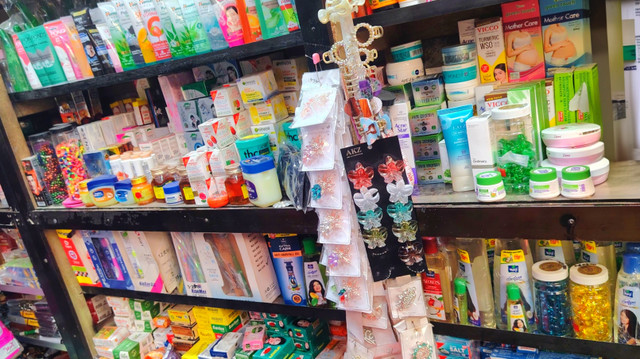 There is a lot of variation in cosmetics there but the way his showcases are arranged seems a bit messy but there is no shortage of products there. There are countless products which are also inside which people usually don't see with their eyes but when people mention the name of a product he finds it and brings it. Apart from that he keeps any other type of product cosmetics there.