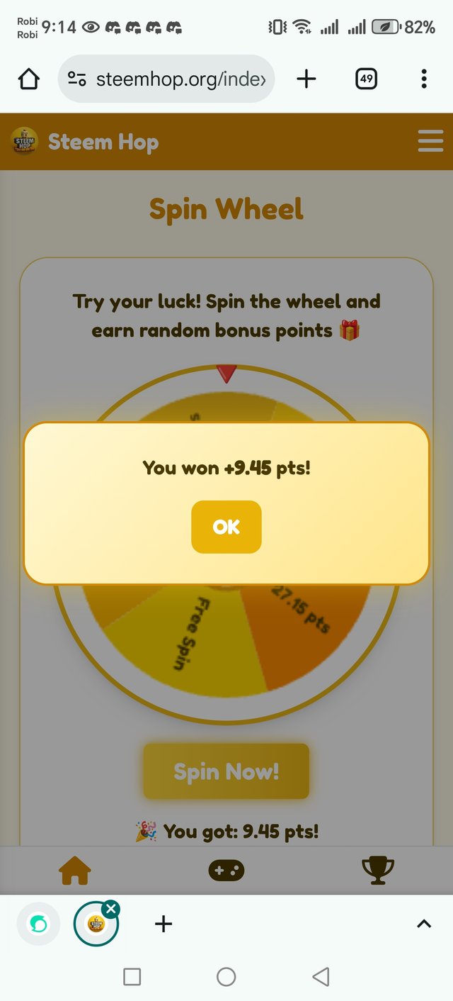 Then go to three dot menu and Spin wheel after spin i got 9.45pts.