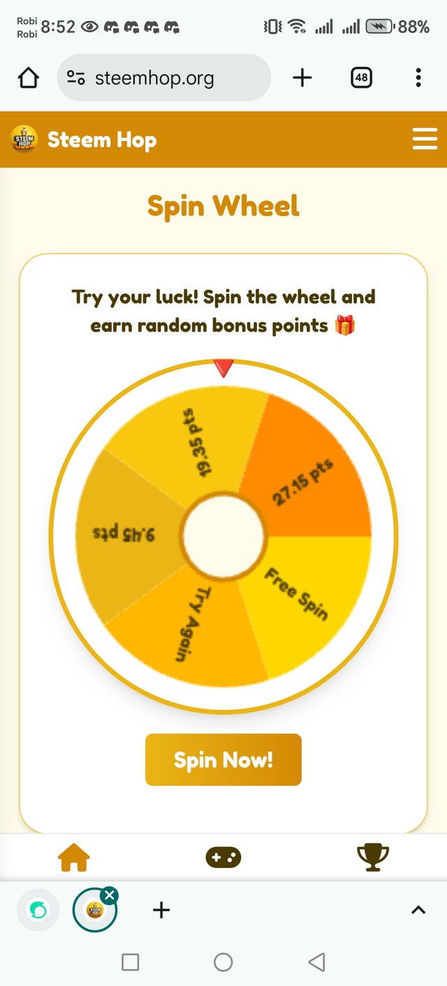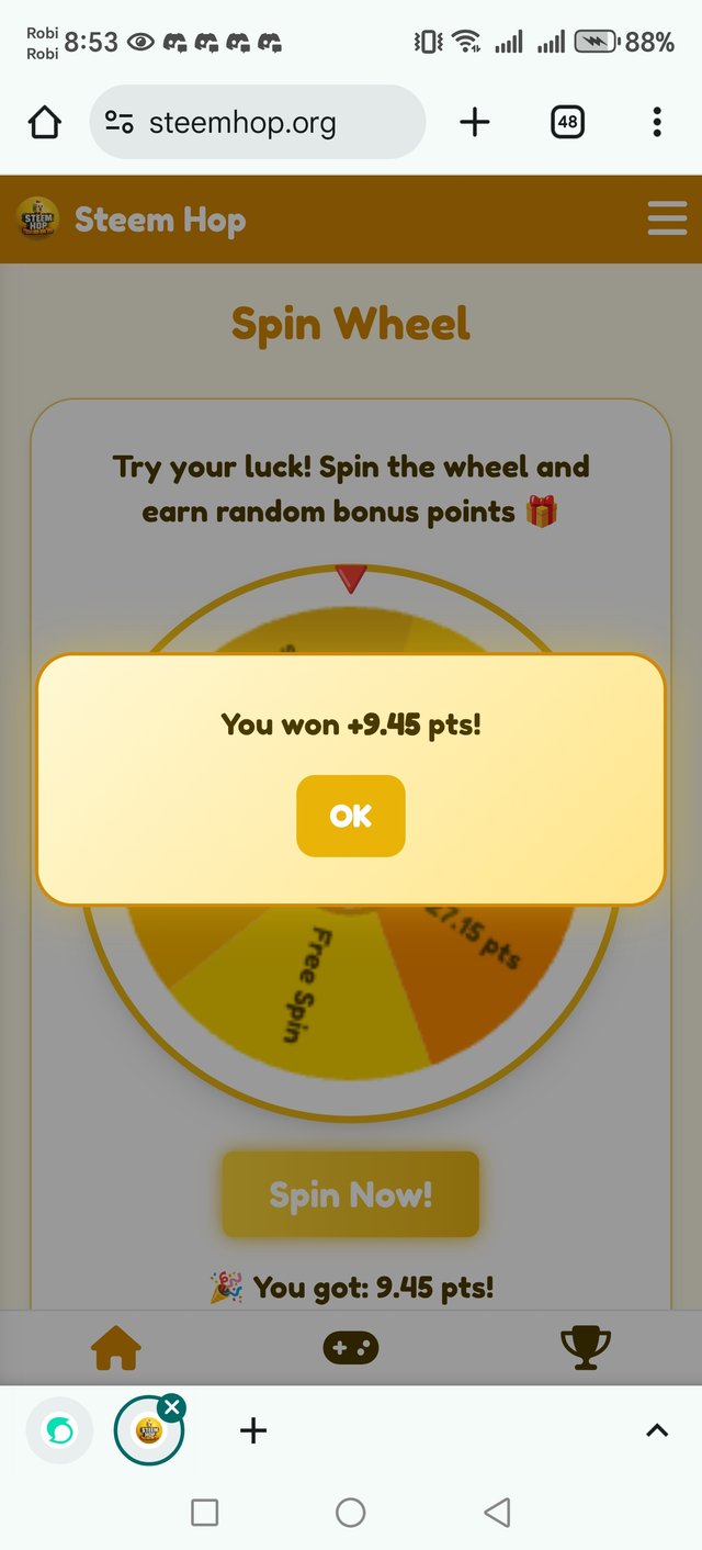Then go to three dot menu and Spin wheel after spin i got 9.45pts.