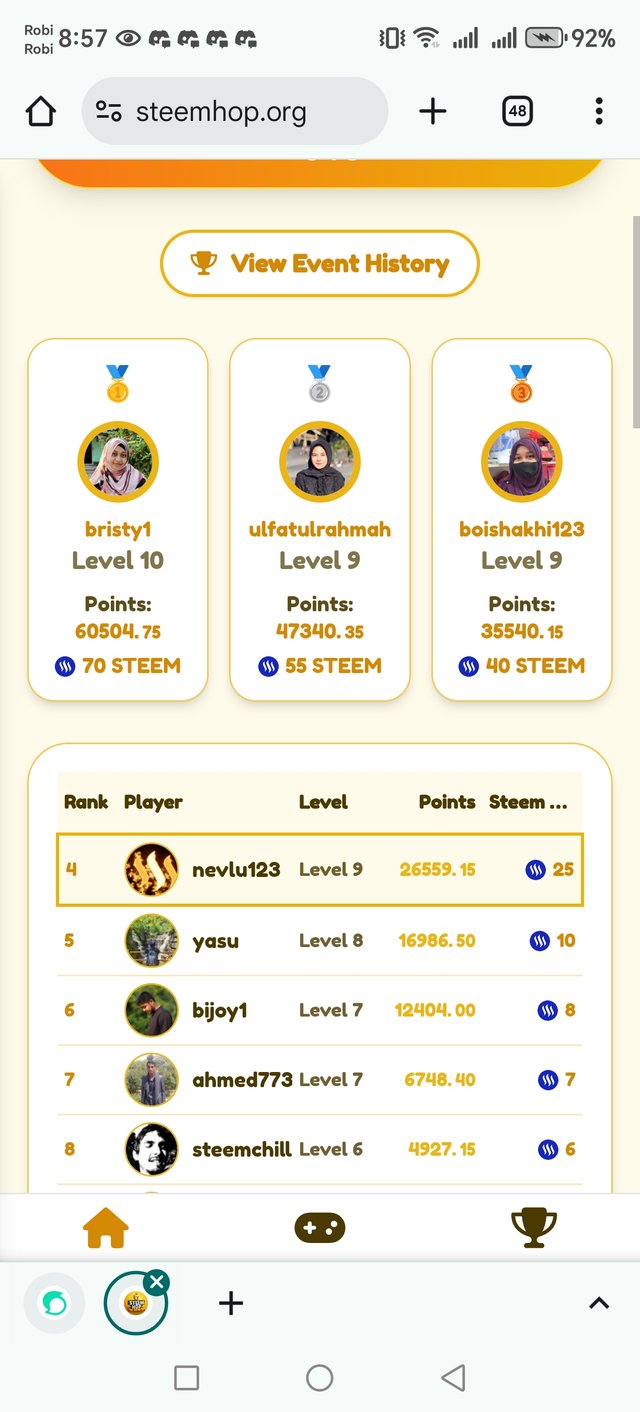 I am so happy to play this game.First of all thanks toΒ @steemhop.orgΒ for give us opportunity to play the game.Also thanks to all developer of this game.Let's start my game activity.
