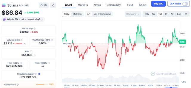 Solana is a coin that is currently ranked at 7 in coinmarketcap.com. This is a popular coin, and last year we saw its price in the range of USD 250, but currently its below 100 USD and if I try to be precise, then its at USD 86 and it has been moving here in this range for some time.