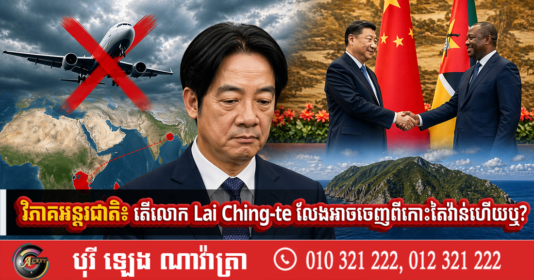 (ប៉េកាំង)៖ កាលពីថ្ងៃទី២១ ខែមេសា ឆ្នាំ២០២៦ មេដឹកនាំកោះតៃវ៉ាន់ លោក Lai Ching-te បានប្រកាសលុបចោលគម្រោងធ្វើទស្សនកិច្ចទៅកាន់ប្រទេសអេស្វាទីនី ដែលជាសម្ព័ន្ធមិត្តតែ ១គត់របស់ តៃវ៉ាន់នៅទ្វីបអាហ្រ្វិក បន្ទាប់ពីប្រទេសអាហ្រ្វិក៣ផ្សេងទៀត រួមមាន Seychelles Mauritius និង Madagascar សុខៗស្រាប់តែលុបចោលការអនុញ្ញាតឱ្យយន្តហោះរបស់លោក ហោះធ្វើដំណើរឆ្លងកាត់ដែនអាកាសរបស់ពួកគេ។