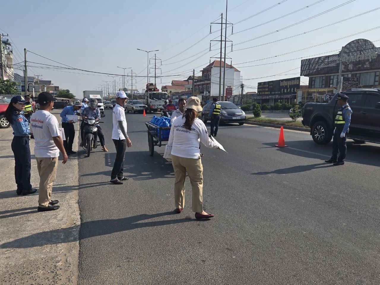 លោកស្រី បានបន្តថា ថ្ងៃនេះ គឺថ្ងៃទី១០ ខែមេសា ឆ្នាំ២០២៦ គណៈកម្មាធិការជាតិសុវត្ថិភាពចរាចរណ៍ផ្លូវគោកសហ ការជាមួយអង្គការបង្ការរបួសអាស៊ី មន្ទីរសាធារណការ និងដឹកជញ្ជូនរាជ ធានីភ្នំពេញ និងក្រុមហ៊ុនម៉ូតូហុងដា បានធ្វើយុទ្ធនាការដើម្បីផ្សព្វផ្សាយអប់រំលើក កម្ពស់សុវត្ថិភាពចរាចរណ៍នៅលើបណ្តាយផ្លូវជាតិលេខ៣ ក្នុងភូមិសាស្ត្រនៃទឹកដីខណ្ឌកំបូល រាជធានីភ្នំពេញ ដើម្បីឱ្យអ្នកធ្វើដំណើរតាមដងផ្លូវមានការប្រុង ប្រយ័ត្នក្នុងការការពារអាយុជីវិតរបស់ពួកគាត់នៅតាមដងផ្លូវ ជាពិសេសក្នុង ឱកាសនៃពិធីបុណ្យចូលឆ្នាំថ្មីប្រពៃណីជាតិ ដែលជាពេលវេលាមួយមានចរាចរណ៍ដ៏មមាញឹក។