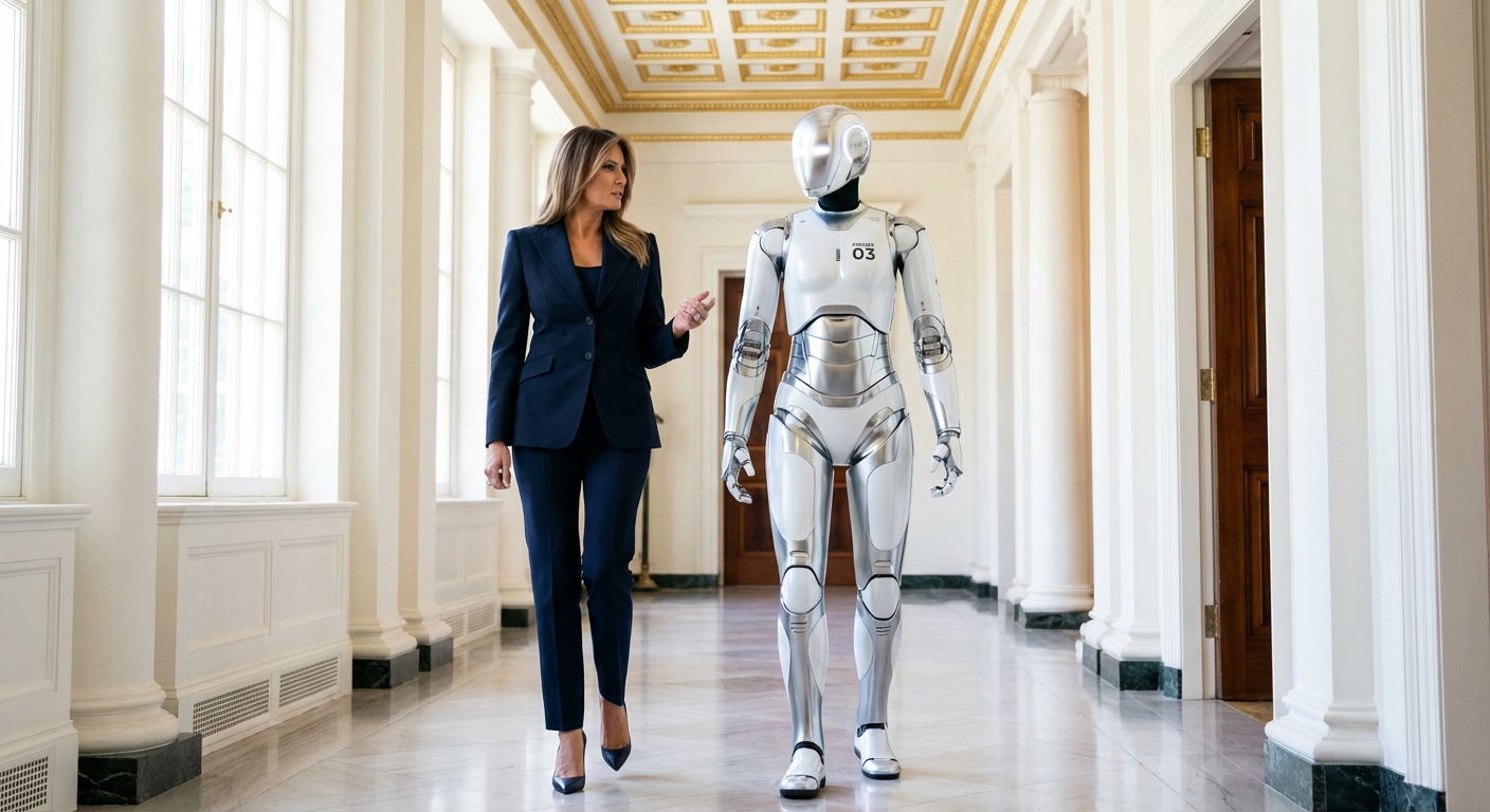 Melania Trump verscheen in het Witte Huis met een Amerikaanse humanoïde robot, 'Figure 03', tijdens een onderwijstop. Dit markeert mogelijk een nieuwe fase in de overheidsfocus op fysieke AI en de integratie ervan in educatieve technologie, wat vragen oproept over de rol van robots in de maatschappij.